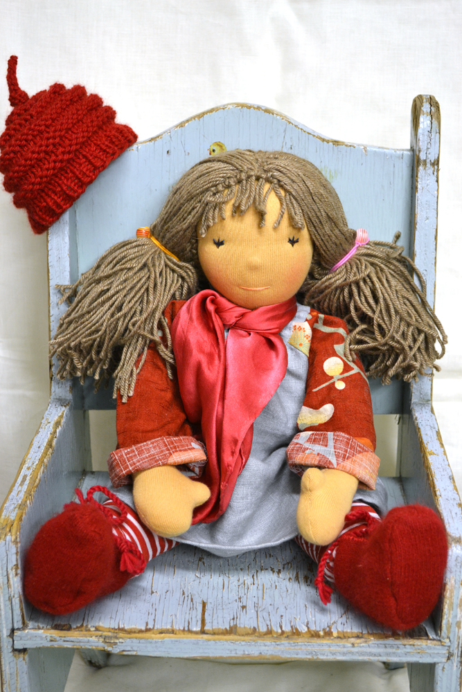 I have been making dolls since the 1980’s, when I started making traditional Swiss fabric dolls which are the same as Waldorf dolls in body, with a different way of making a head. I have also made porcelain dolls, knitted dolls and mixed media dolls.